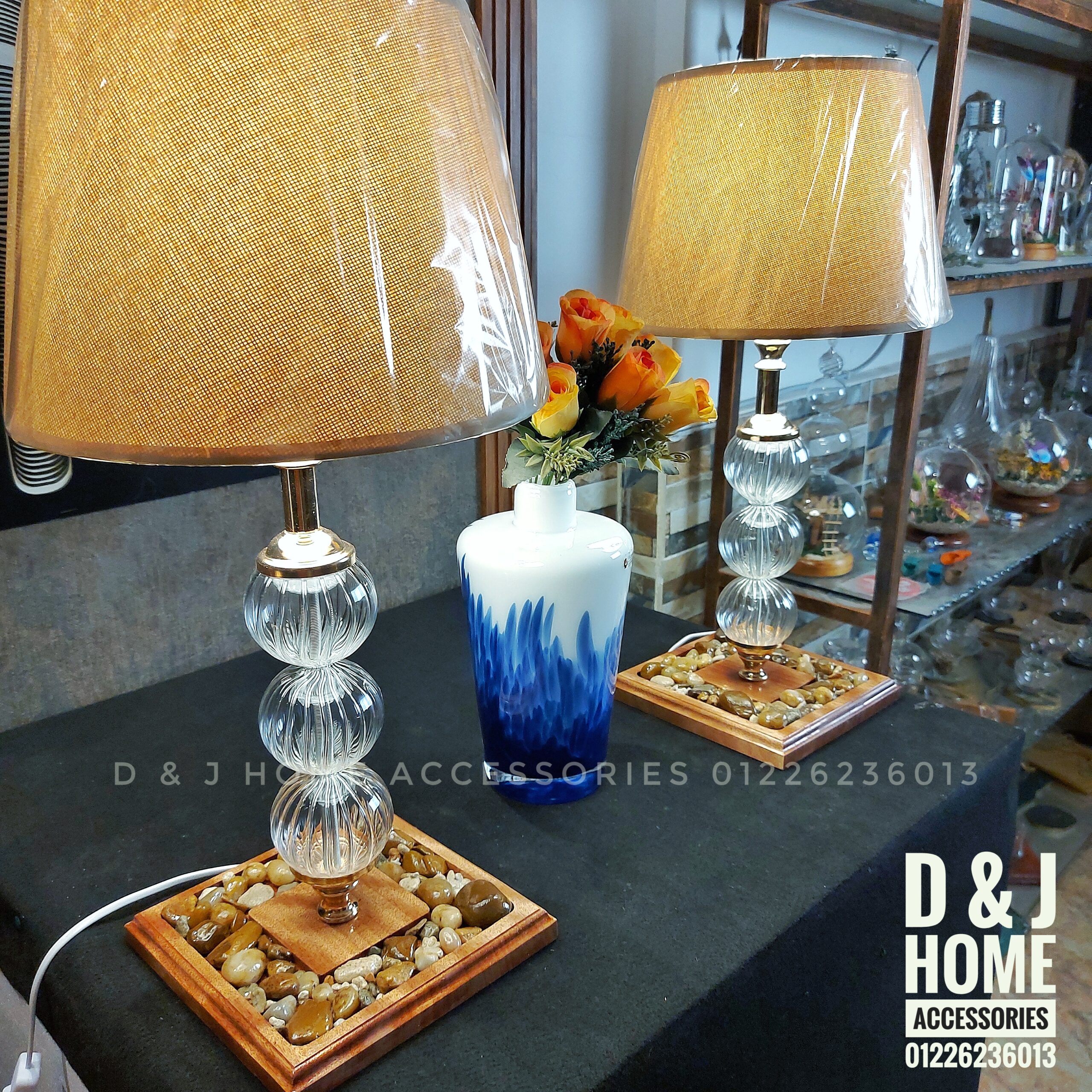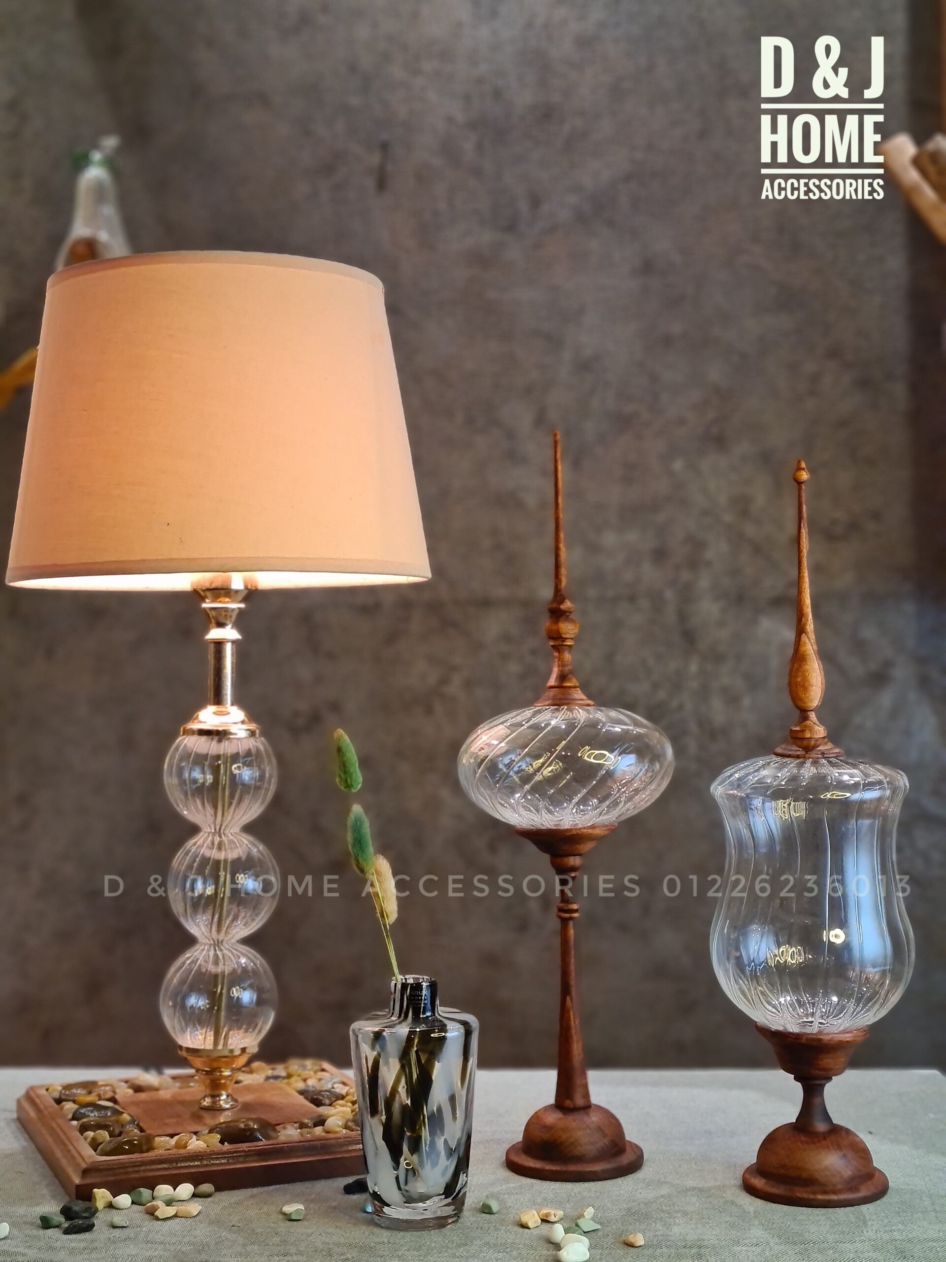 اباجوره مميزه مزيج من الخشب و الزجاج و الحجر